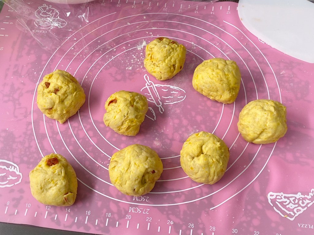 Another ingredient in the rolls is goji berry. It’s a super healthy superfood, and it’s got a subtly-sweet taste which is quite lovely to have in the bread. It goes very well with the pumpkin.