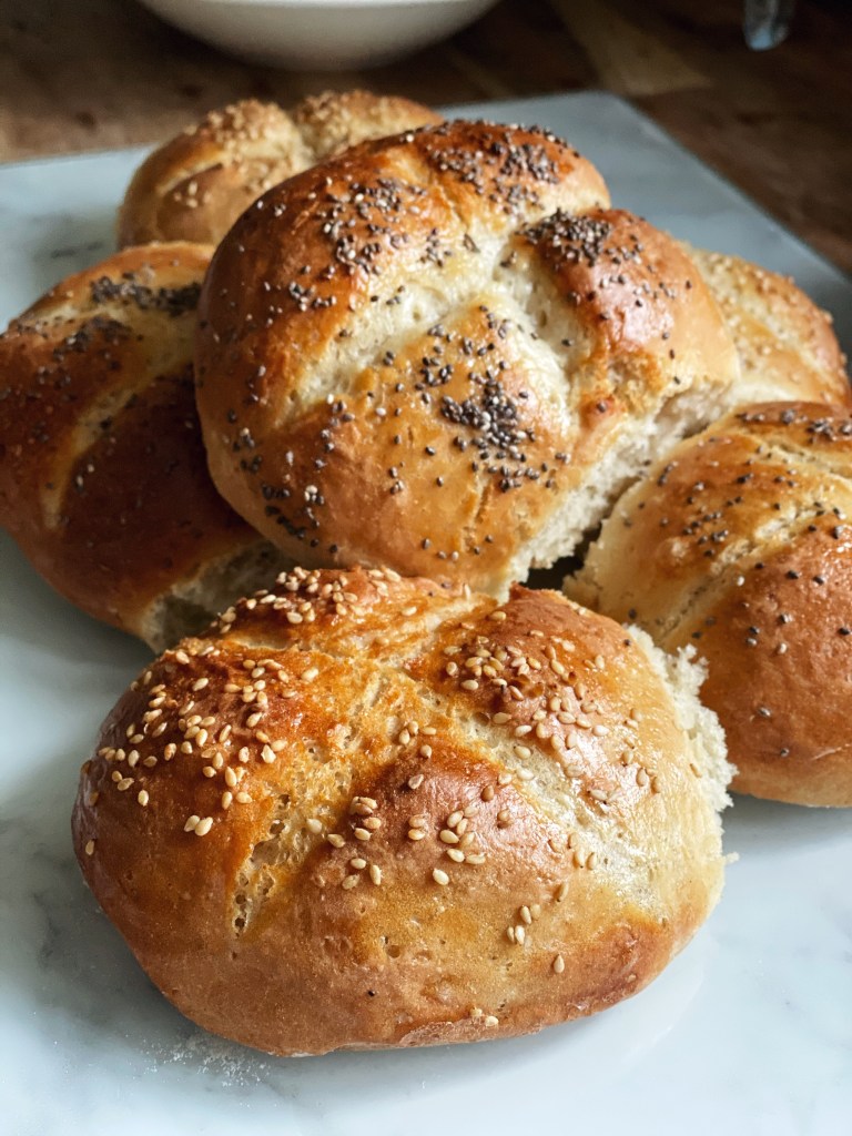 In the mood to make some “real bread” today, so making these golden breakfast rolls in the morning. When the rolls come out of the oven, tap them on the bottom to see if they sound hollow. If yes, then they’re done. Crusty on the outside and soft bread on the inside! This really is much better than any no-knead bread I’ve made before!
