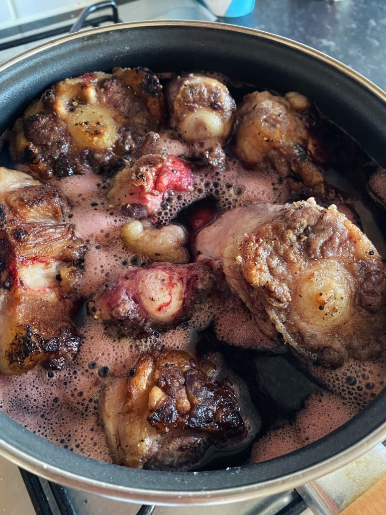 After 3 hours of slow-cooking, the oxtail is so tender yet not falling apart. The meat falls off the bone as you eat it, best served with some creamy mashed potato to soak up the beautiful red wine sauce.