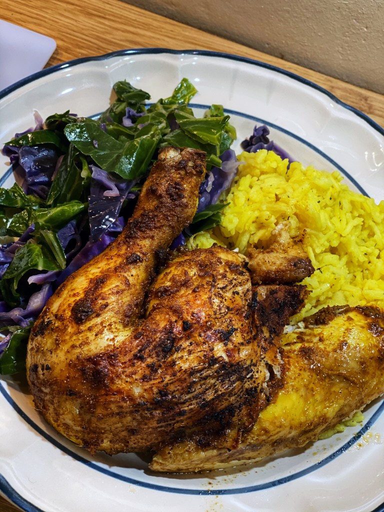 - Rub spice mixture over both sides of the chicken and marinate for 1 hour. If you don’t have time, you can put the chicken in the oven straight away. It will taste amazing too.