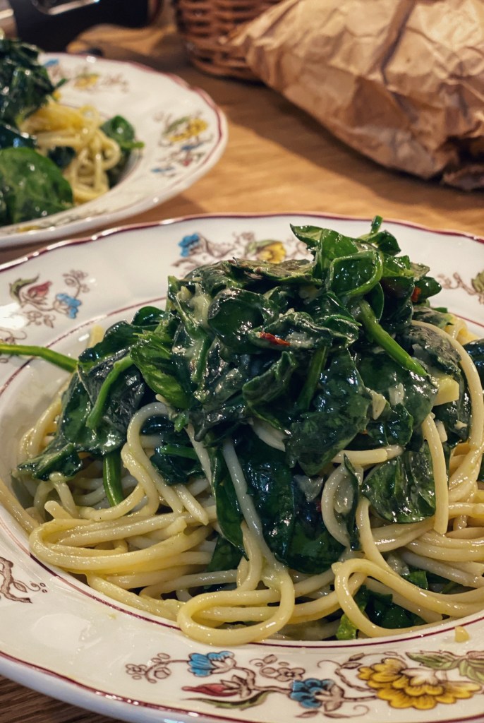 Inspired by the Italian classic – Spaghetti Aglio e Olio but with a spinachy and cheesy twist.