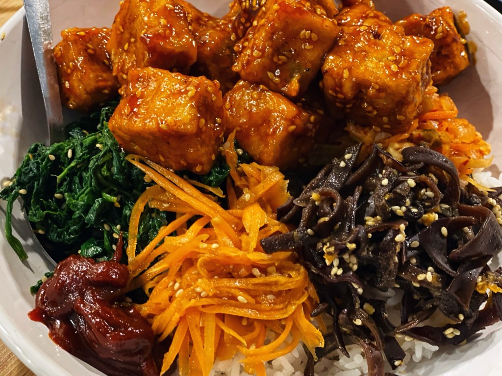 Korean fried tofu is a tantalising dish featuring crispy tofu cubes bathed in a savoury, sweet, and slightly spicy sauce. The tofu itself gives a delightful contrast of textures – crispy on the outside, soft on the inside, elevated by the sauce which is a blend of umami richness and subtle heat.